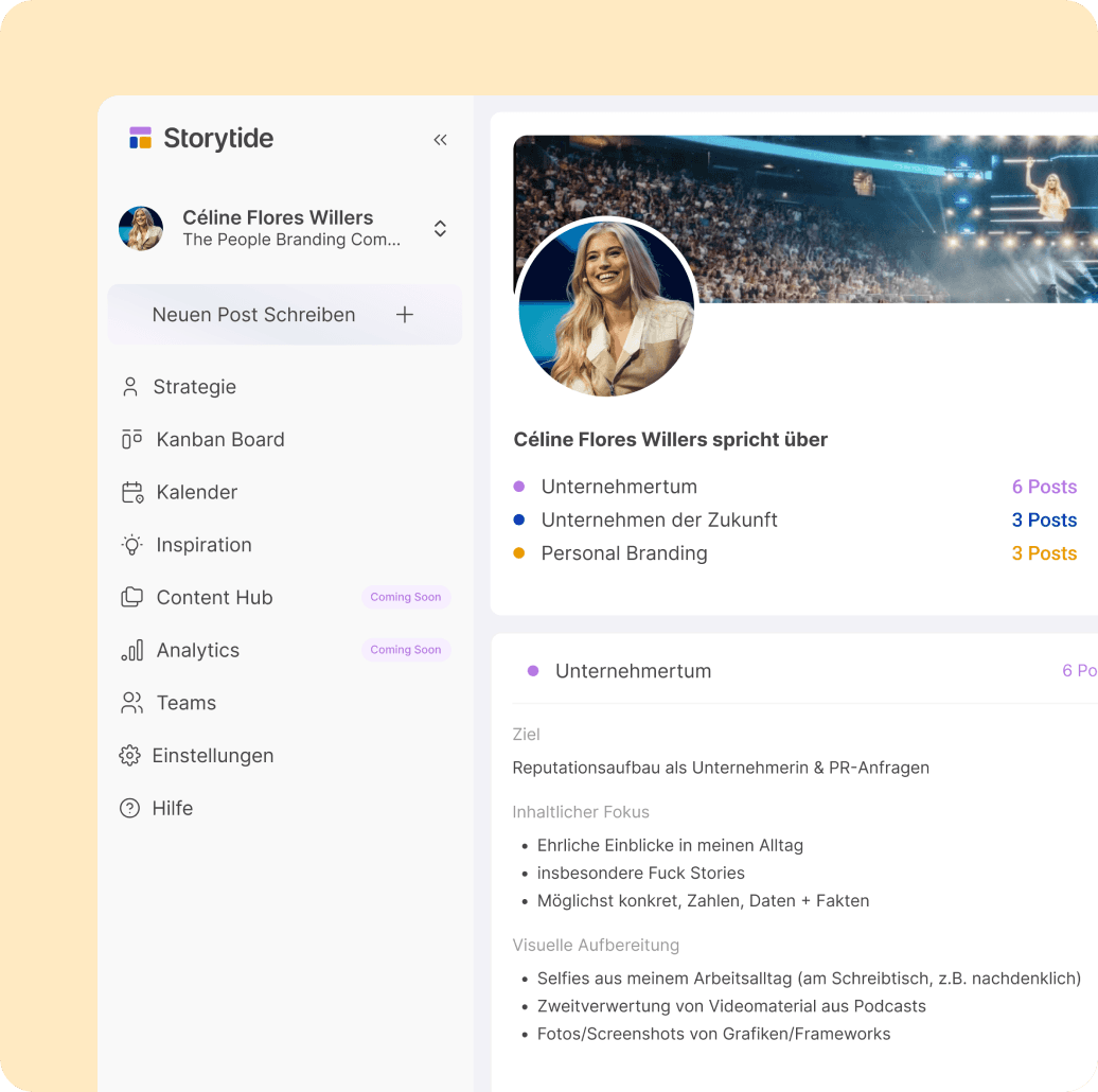 Storytide ist aus der Arbeit der People Branding Company entstanden – gegründet von Céline Flores Willers, LinkedIn Top Voice und eine der erfolgreichsten Unternehmerrinnen Deutschlands.